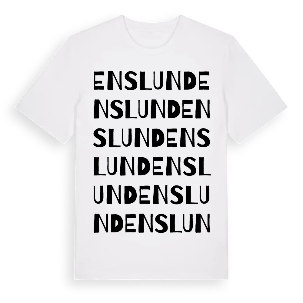 Enslund ordlek t-shirt är inspirerad av Enslund i Södermanlands län, Sverige. Tröjan är designad för dig som har en speciell koppling till platsen – oavsett om du bor här, har rötterna här eller bara älskar Enslund.