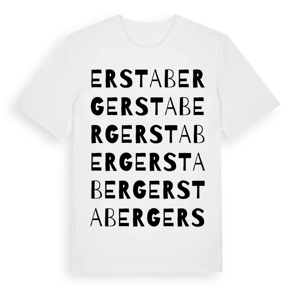 Erstaberg ordlek t-shirt är inspirerad av Erstaberg i Södermanlands län, Sverige. Tröjan är designad för dig som har en speciell koppling till platsen – oavsett om du bor här, har rötterna här eller bara älskar Erstaberg.