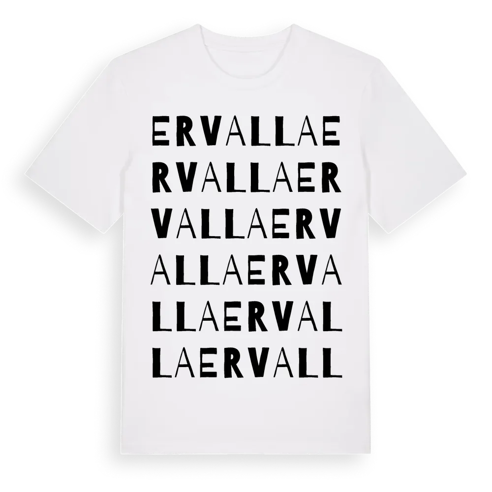 Ervalla ordlek t-shirt är inspirerad av Ervalla i Södermanlands län, Sverige. Tröjan är designad för dig som har en speciell koppling till platsen – oavsett om du bor här, har rötterna här eller bara älskar Ervalla.
