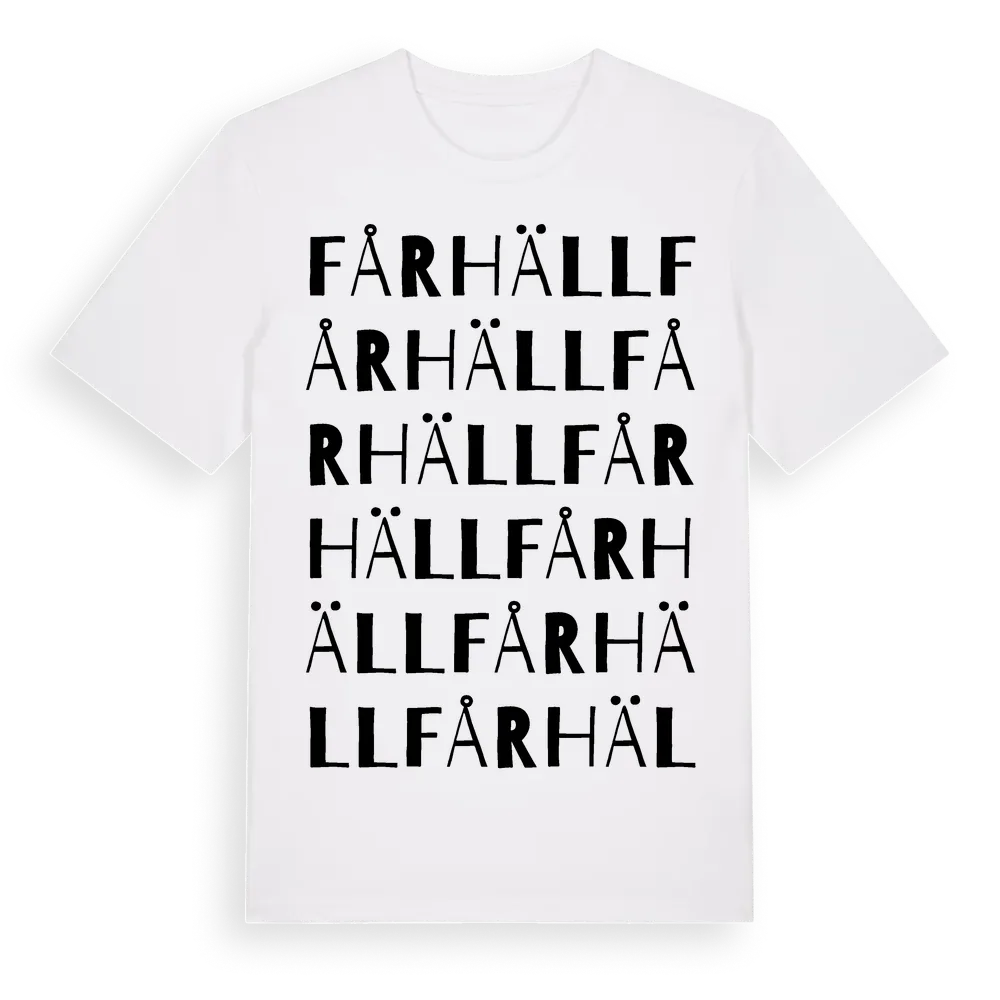 Fårhäll ordlek t-shirt är inspirerad av Fårhäll i Södermanlands län, Sverige. Tröjan är designad för dig som har en speciell koppling till platsen – oavsett om du bor här, har rötterna här eller bara älskar Fårhäll.