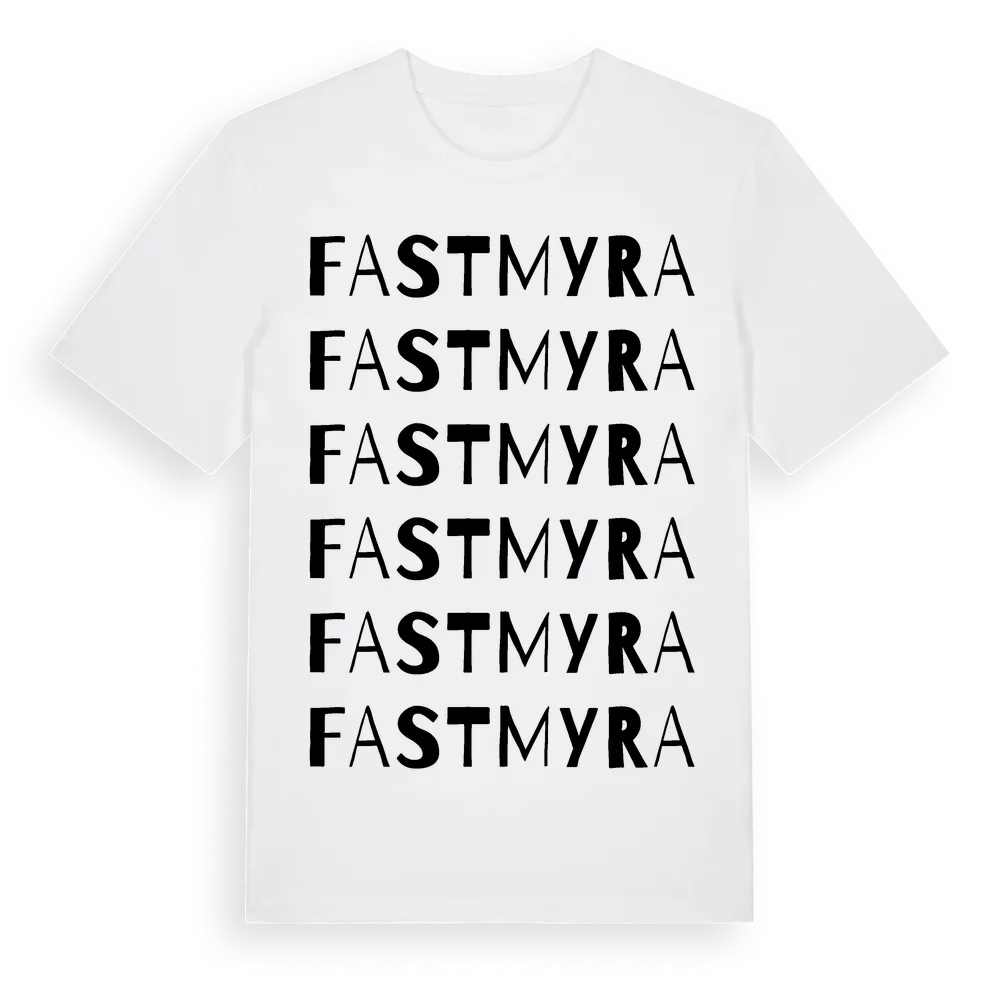 Fastmyra ordlek t-shirt är inspirerad av Fastmyra i Södermanlands län, Sverige. Tröjan är designad för dig som har en speciell koppling till platsen – oavsett om du bor här, har rötterna här eller bara älskar Fastmyra.