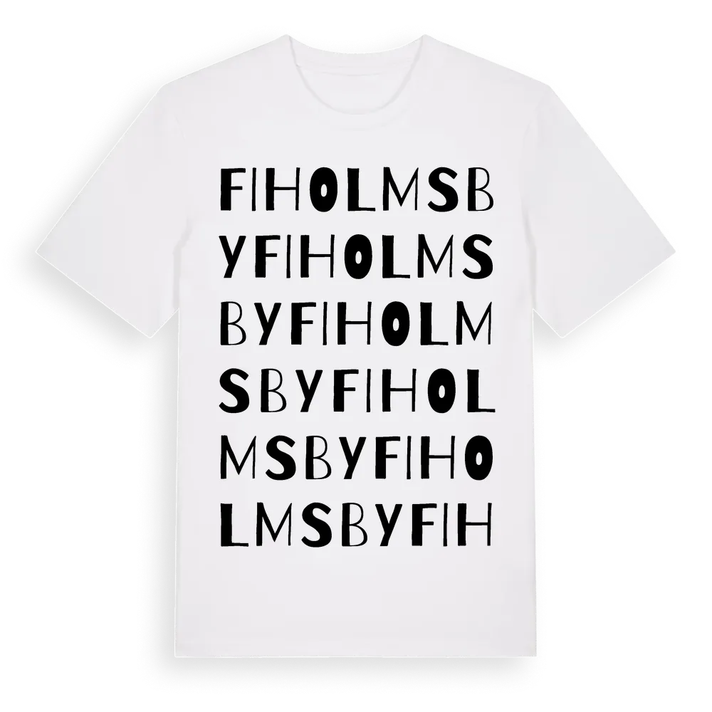 Fiholmsby ordlek t-shirt är inspirerad av byn Fiholmsby i Södermanlands län, Sverige. Tröjan är designad för dig som har en speciell koppling till platsen – oavsett om du bor här, har rötterna här eller bara älskar Fiholmsby.