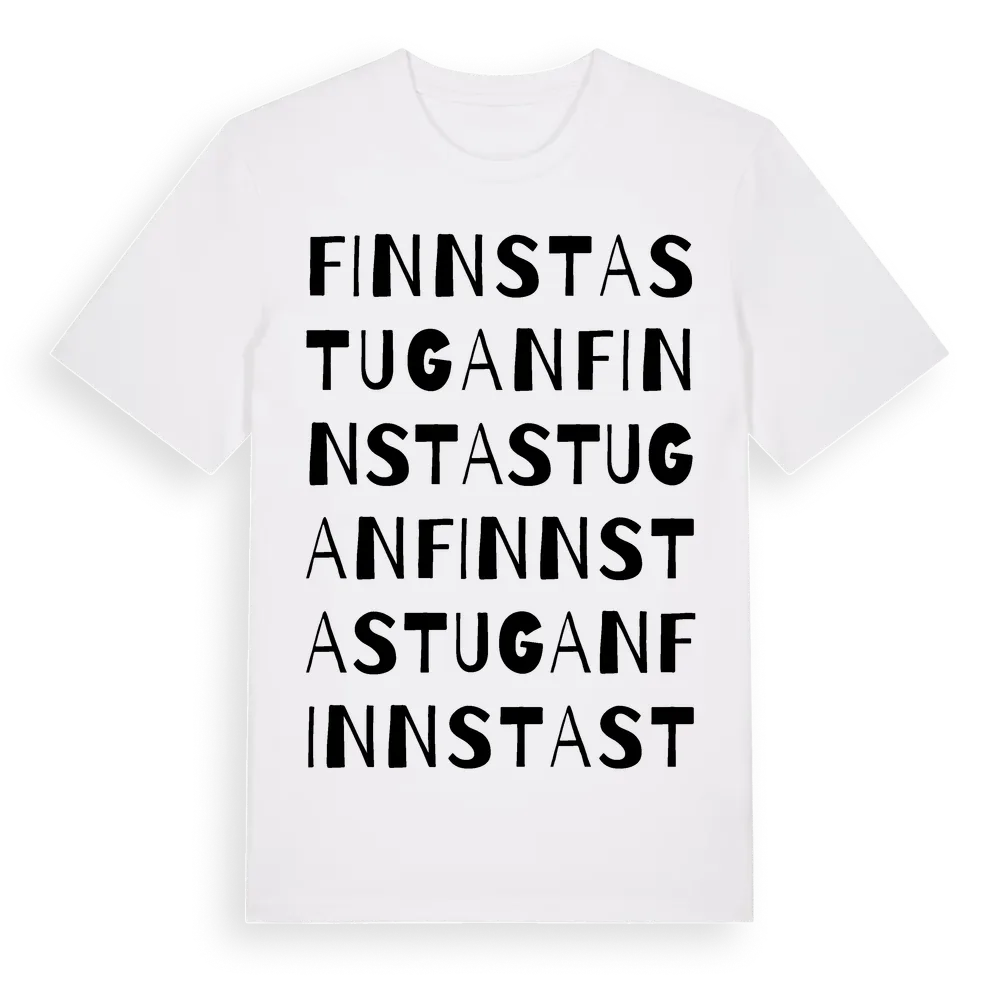 Finnstastugan ordlek t-shirt är inspirerad av Finnstastugan i Södermanlands län, Sverige. Tröjan är designad för dig som har en speciell koppling till platsen – oavsett om du bor här, har rötterna här eller bara älskar Finnstastugan.