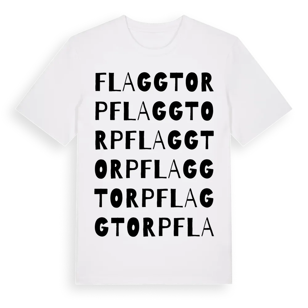 Flaggtorp ordlek t-shirt är inspirerad av Flaggtorp i Södermanlands län, Sverige. Tröjan är designad för dig som har en speciell koppling till platsen – oavsett om du bor här, har rötterna här eller bara älskar Flaggtorp.