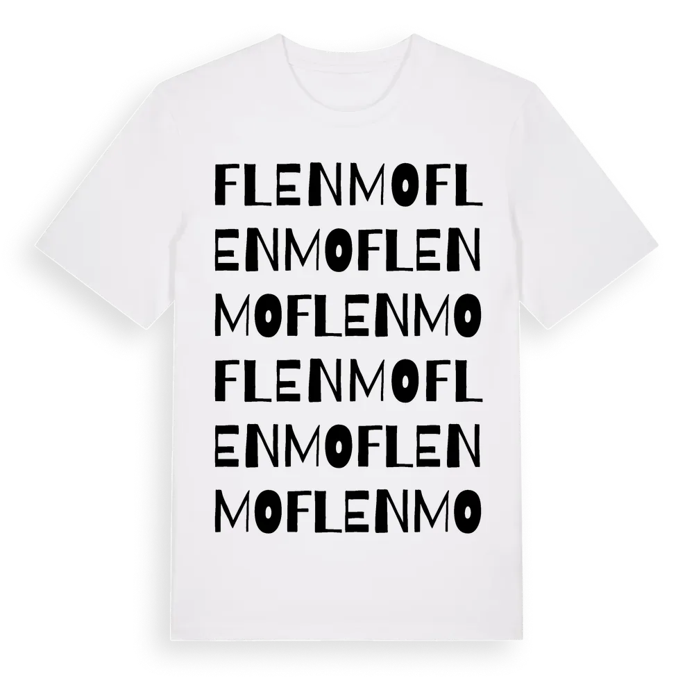 Flenmo ordlek t-shirt är inspirerad av byn Flenmo i Södermanlands län, Sverige. Tröjan är designad för dig som har en speciell koppling till platsen – oavsett om du bor här, har rötterna här eller bara älskar Flenmo.