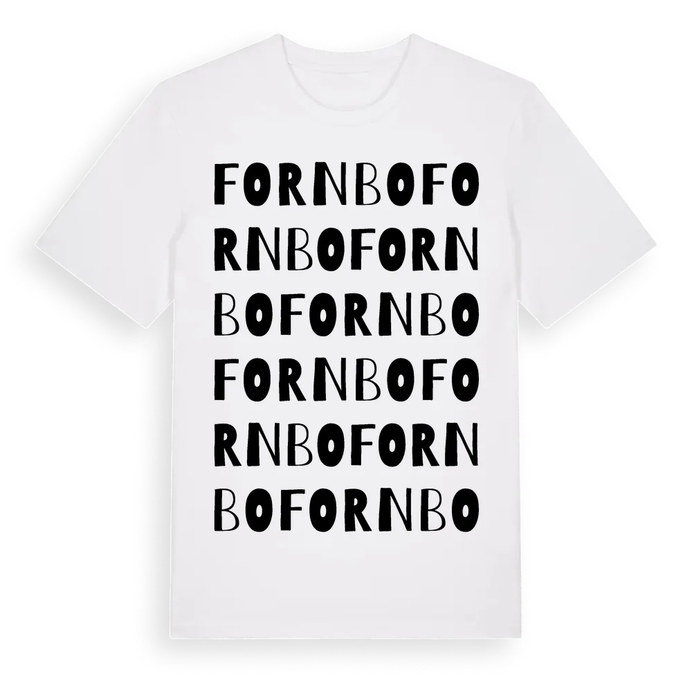 En ordlek byggd på Fornbos namn. Subtilt och klurig – ett motiv som bara de som verkligen känner platsen fullt ut förstår. Premium bomull, unisex – från byn Fornbo i Södermanlands län.