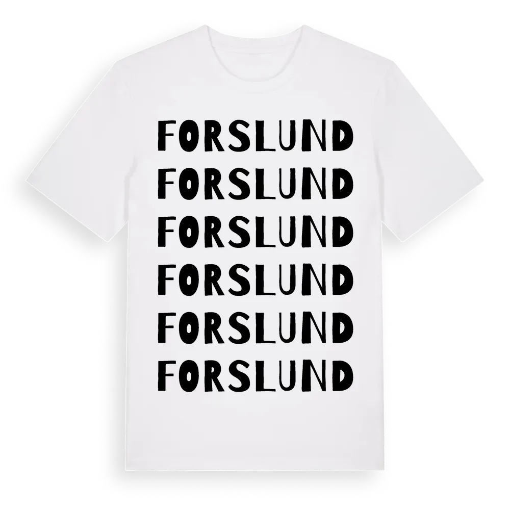 Forslund ordlek t-shirt är inspirerad av Forslund i Södermanlands län, Sverige. Tröjan är designad för dig som har en speciell koppling till platsen – oavsett om du bor här, har rötterna här eller bara älskar Forslund.