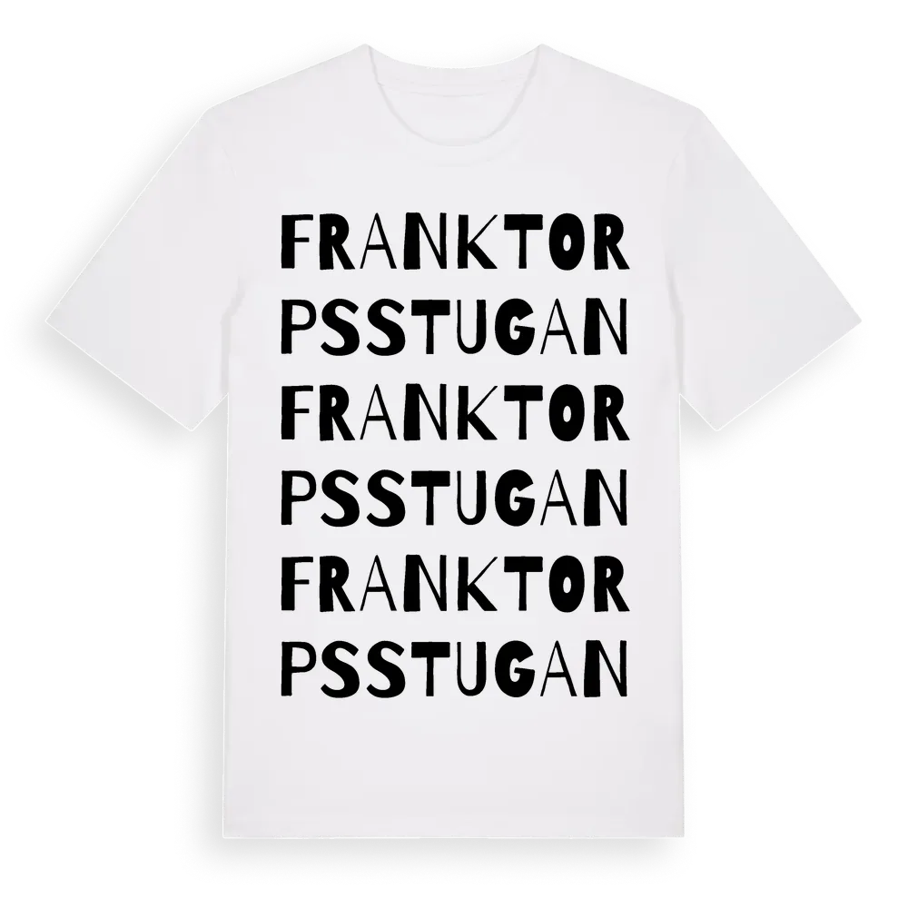 En ordlek byggd på Franktorpsstugans namn. Subtilt och klurig – ett motiv som bara de som verkligen känner platsen fullt ut förstår. Premium bomull, unisex – från Franktorpsstugan i Södermanlands län.