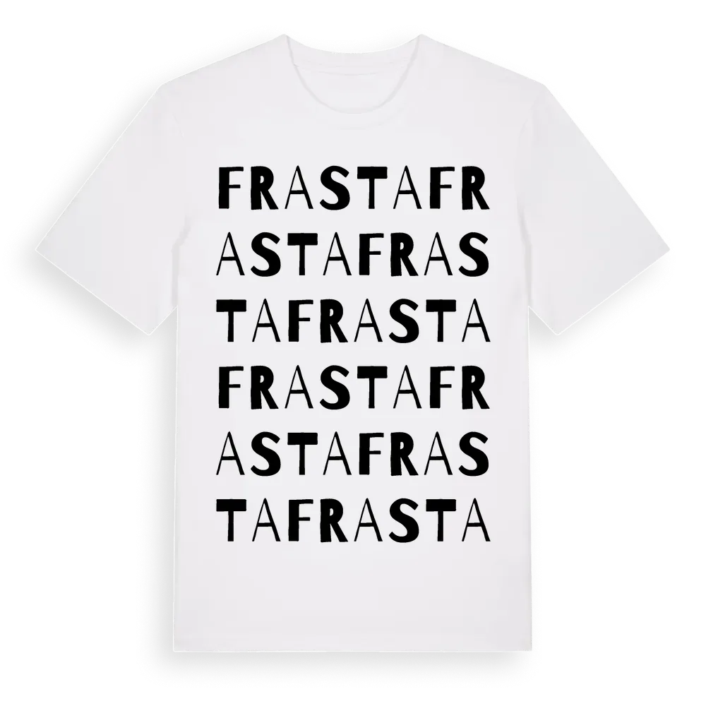 En ordlek byggd på Frastas namn. Subtilt och klurig – ett motiv som bara de som verkligen känner platsen fullt ut förstår. Premium bomull, unisex – från byn Frasta i Södermanlands län.