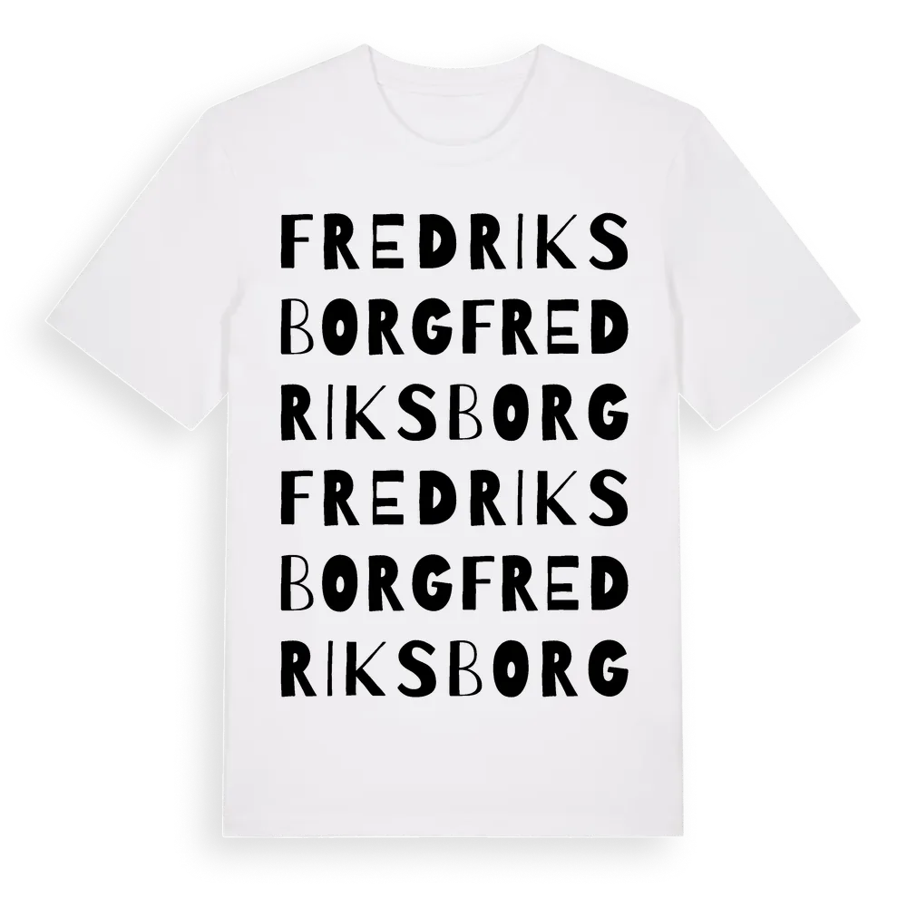 Fredriksborg ordlek t-shirt är inspirerad av Fredriksborg i Södermanlands län, Sverige. Tröjan är designad för dig som har en speciell koppling till platsen – oavsett om du bor här, har rötterna här eller bara älskar Fredriksborg.