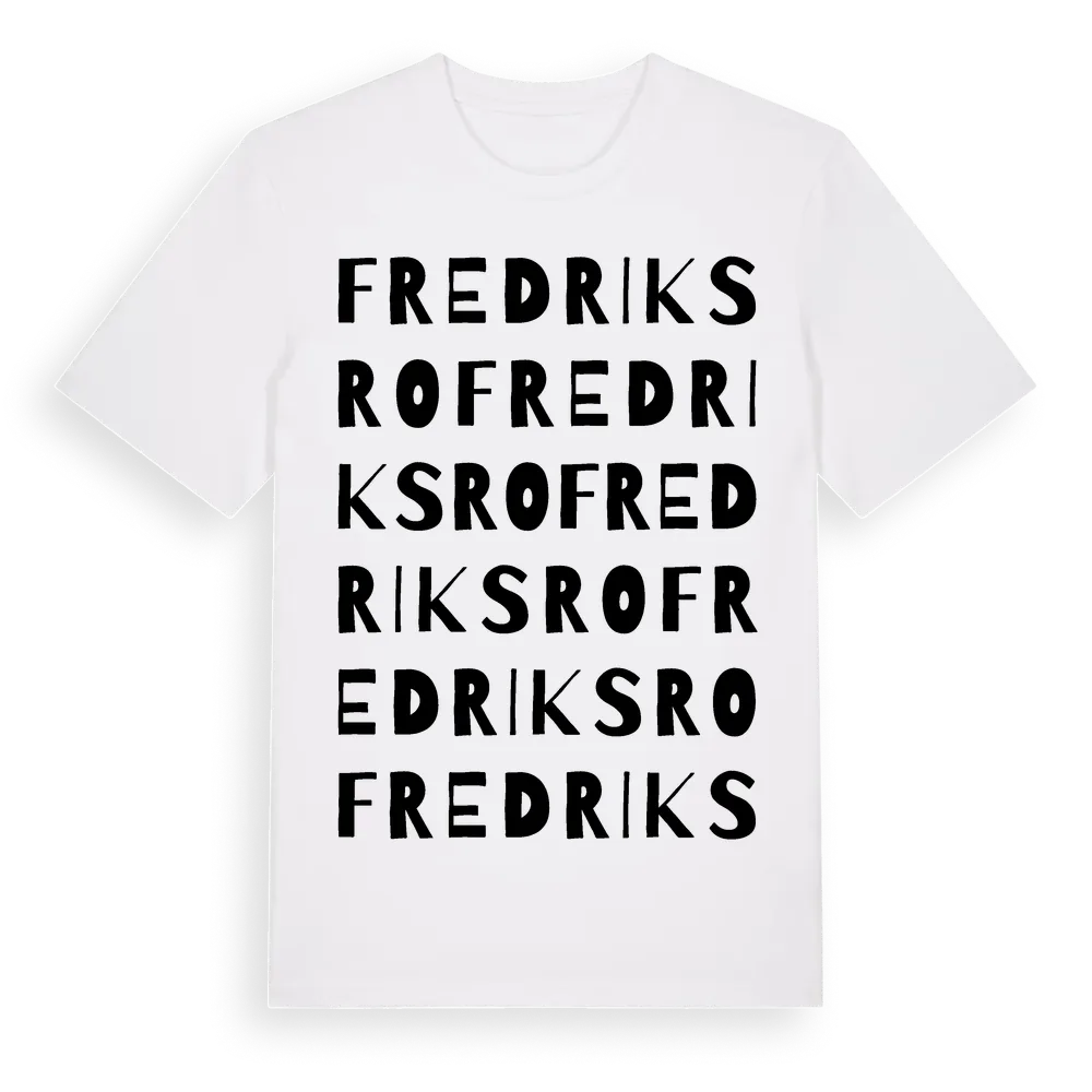 Fredriksro ordlek t-shirt är inspirerad av Fredriksro i Södermanlands län, Sverige. Tröjan är designad för dig som har en speciell koppling till platsen – oavsett om du bor här, har rötterna här eller bara älskar Fredriksro.