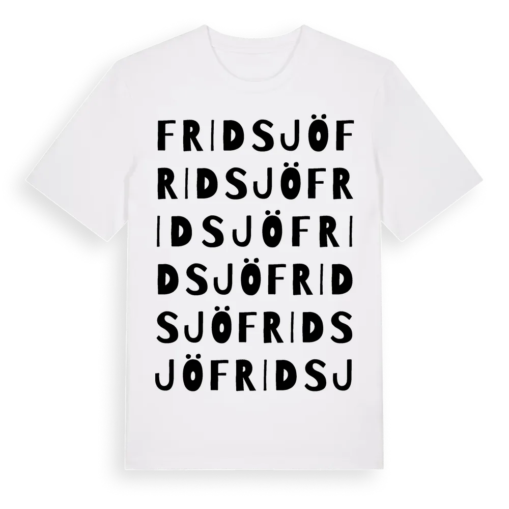 Fridsjö ordlek t-shirt är inspirerad av Fridsjö i Södermanlands län, Sverige. Tröjan är designad för dig som har en speciell koppling till platsen – oavsett om du bor här, har rötterna här eller bara älskar Fridsjö.