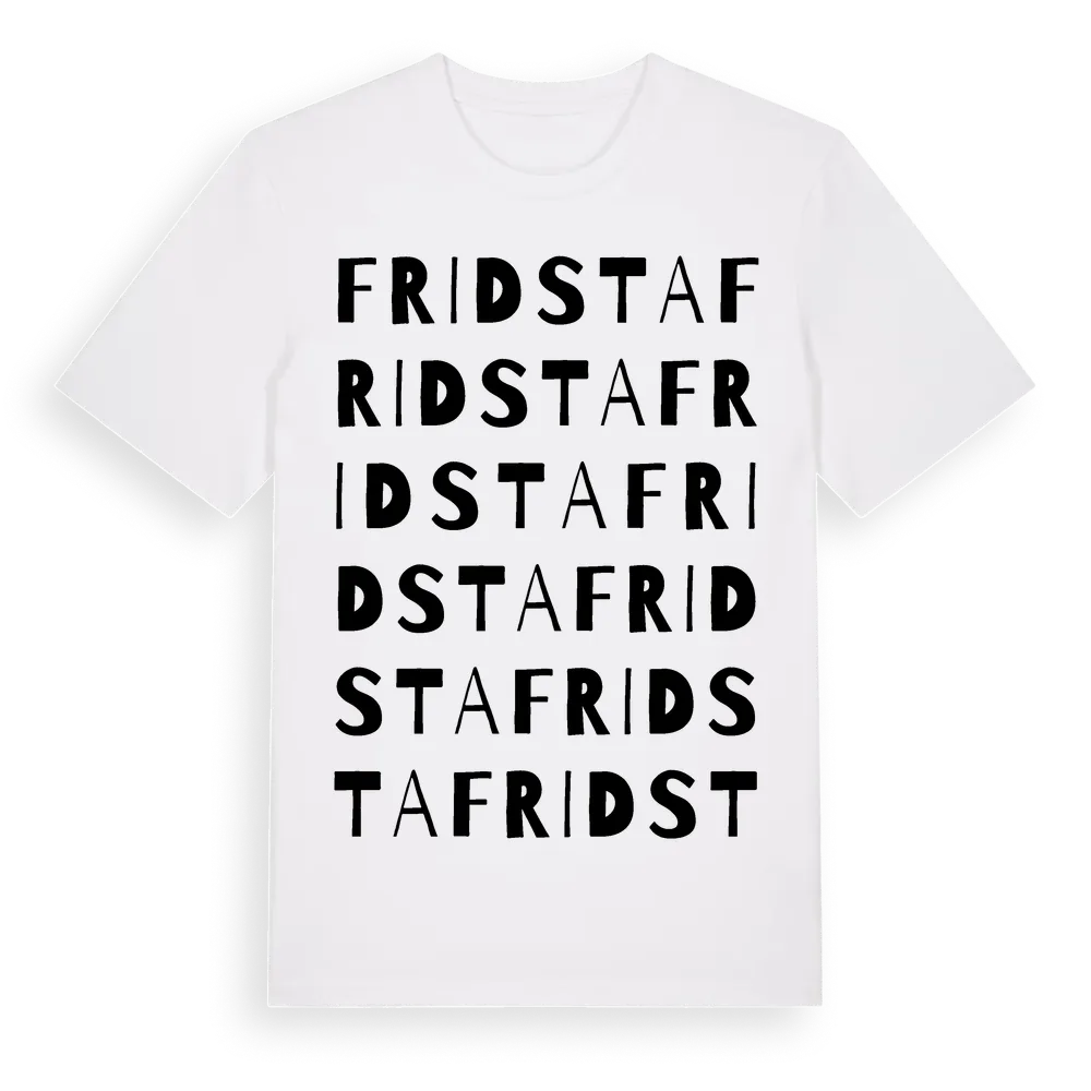 Fridsta ordlek t-shirt är inspirerad av Fridsta i Södermanlands län, Sverige. Tröjan är designad för dig som har en speciell koppling till platsen – oavsett om du bor här, har rötterna här eller bara älskar Fridsta.