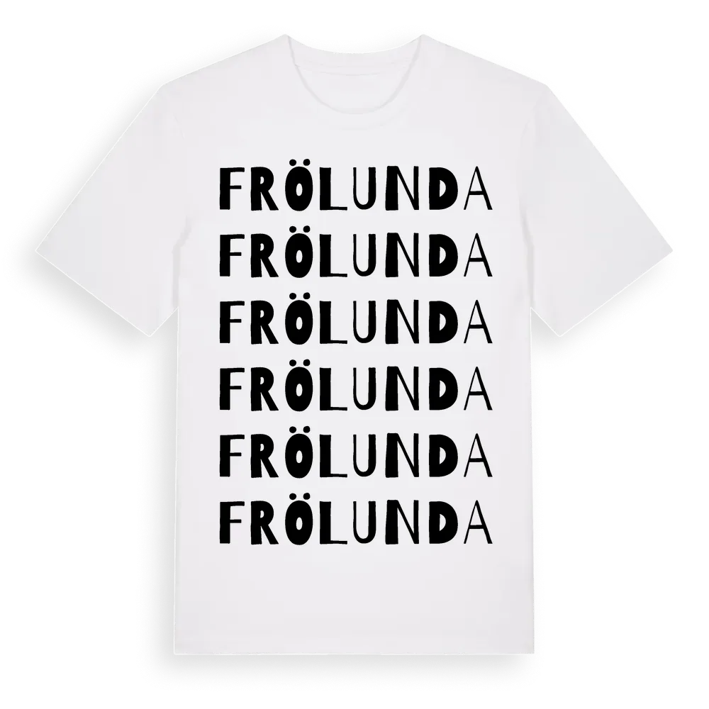Frölunda ordlek t-shirt är inspirerad av Frölunda i Södermanlands län, Sverige. Tröjan är designad för dig som har en speciell koppling till platsen – oavsett om du bor här, har rötterna här eller bara älskar Frölunda.