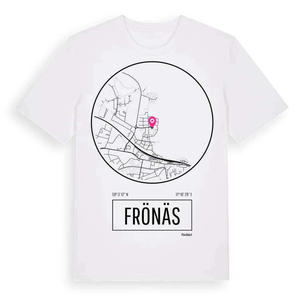 Frönäs t-shirt är inspirerad av stadsdelen Frönäs i Södermanlands län, Sverige. Tröjan är designad för dig som har en speciell koppling till platsen – oavsett om du bor här, har rötterna här eller bara älskar Frönäs.