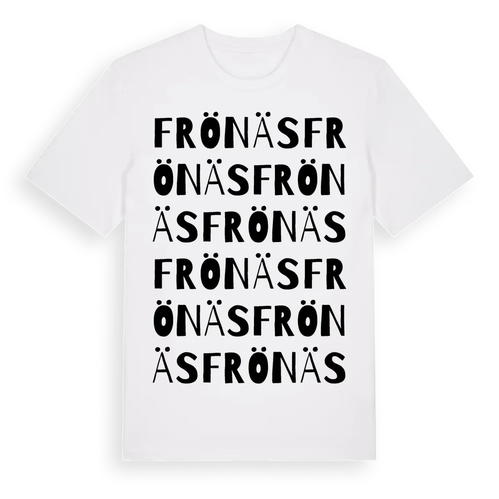 Frönäs ordlek t-shirt är inspirerad av Frönäs i Södermanlands län, Sverige. Tröjan är designad för dig som har en speciell koppling till platsen – oavsett om du bor här, har rötterna här eller bara älskar Frönäs.