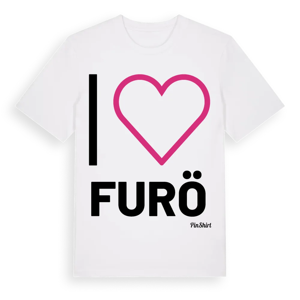 Det klassiska "I ❤ Furö"-motivet i stort format som täcker hela bröstet. För dig som vill visa kärleken till Furö på riktigt. Premium bomull, unisex – från ön Furö i Södermanlands län.