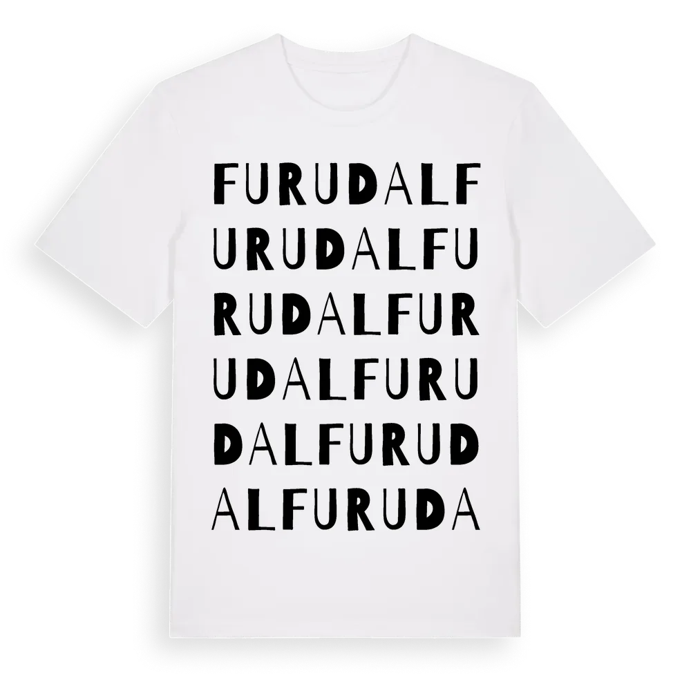 Furudal ordlek t-shirt är inspirerad av Furudal i Södermanlands län, Sverige. Tröjan är designad för dig som har en speciell koppling till platsen – oavsett om du bor här, har rötterna här eller bara älskar Furudal.