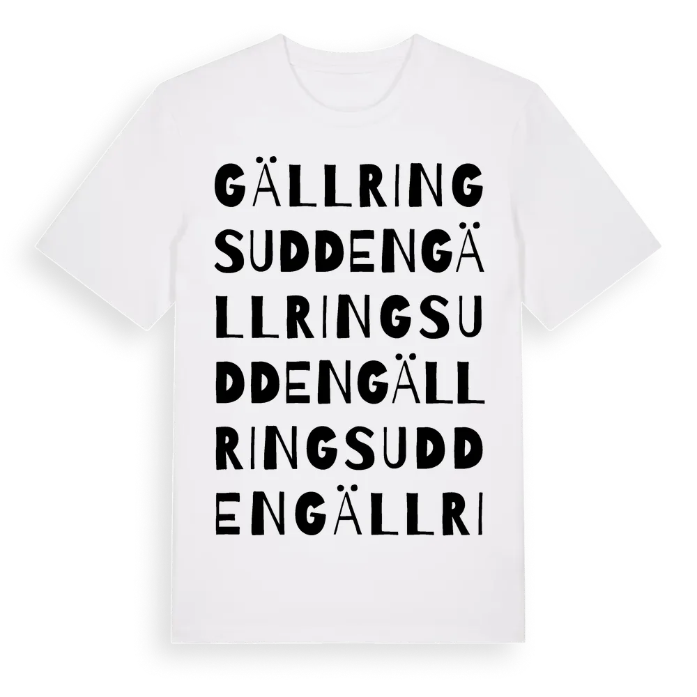 En ordlek byggd på Gällringsuddens namn. Subtilt och klurig – ett motiv som bara de som verkligen känner platsen fullt ut förstår. Premium bomull, unisex – från byn Gällringsudden i Södermanlands län.