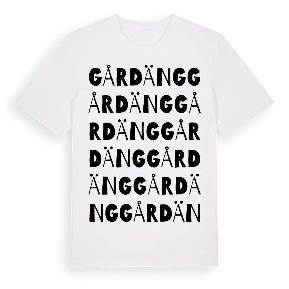 Gårdäng ordlek t-shirt är inspirerad av Gårdäng i Södermanlands län, Sverige. Tröjan är designad för dig som har en speciell koppling till platsen – oavsett om du bor här, har rötterna här eller bara älskar Gårdäng.