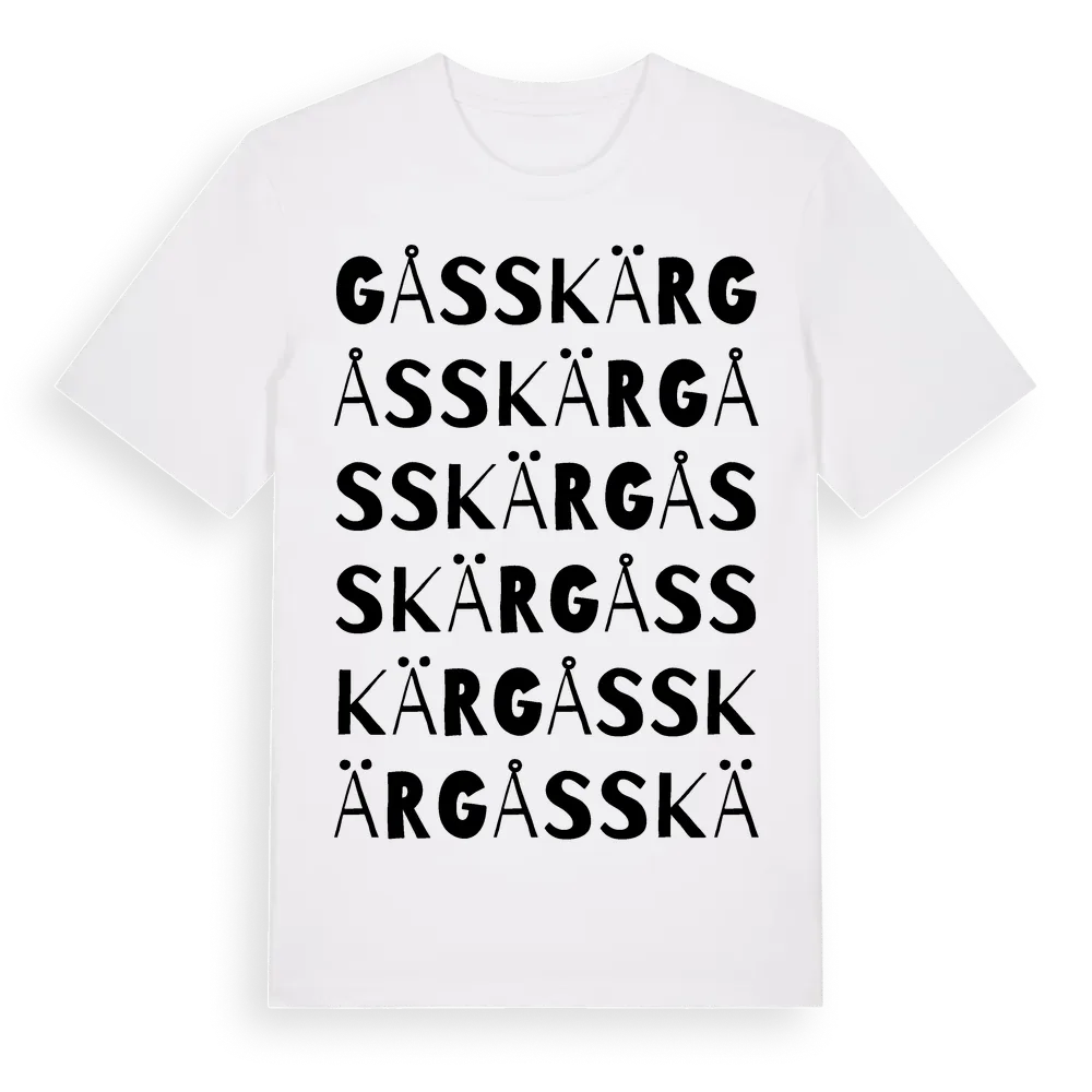 Gåsskär ordlek t-shirt är inspirerad av ön Gåsskär i Södermanlands län, Sverige. Tröjan är designad för dig som har en speciell koppling till platsen – oavsett om du bor här, har rötterna här eller bara älskar Gåsskär.