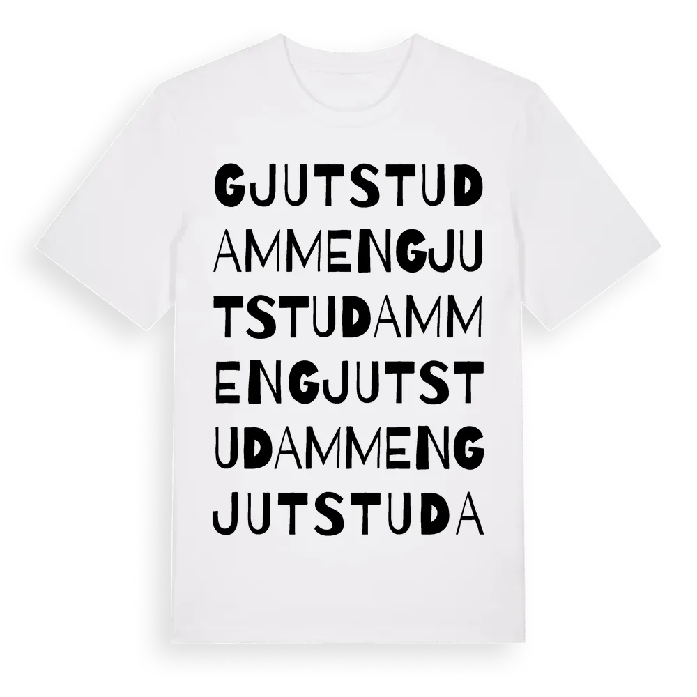 Gjutstudammen ordlek t-shirt är inspirerad av Gjutstudammen i Södermanlands län, Sverige. Tröjan är designad för dig som har en speciell koppling till platsen – oavsett om du bor här, har rötterna här eller bara älskar Gjutstudammen.