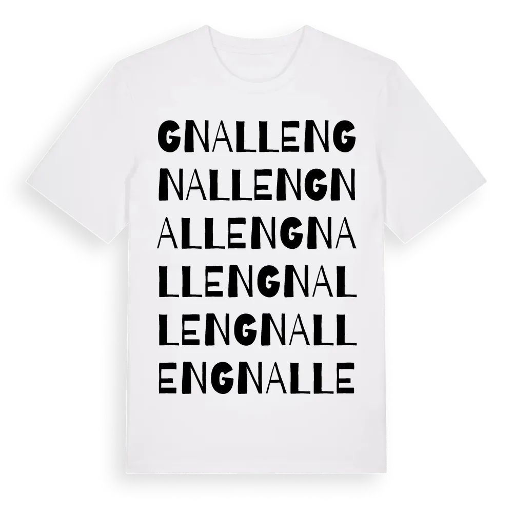 Gnallen ordlek t-shirt är inspirerad av Gnallen i Södermanlands län, Sverige. Tröjan är designad för dig som har en speciell koppling till platsen – oavsett om du bor här, har rötterna här eller bara älskar Gnallen.