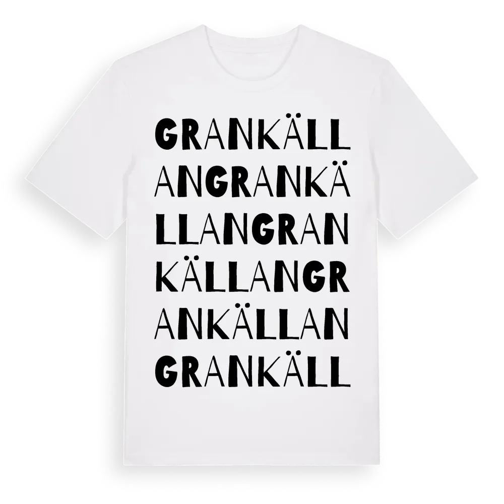 Grankällan ordlek t-shirt är inspirerad av Grankällan i Södermanlands län, Sverige. Tröjan är designad för dig som har en speciell koppling till platsen – oavsett om du bor här, har rötterna här eller bara älskar Grankällan.