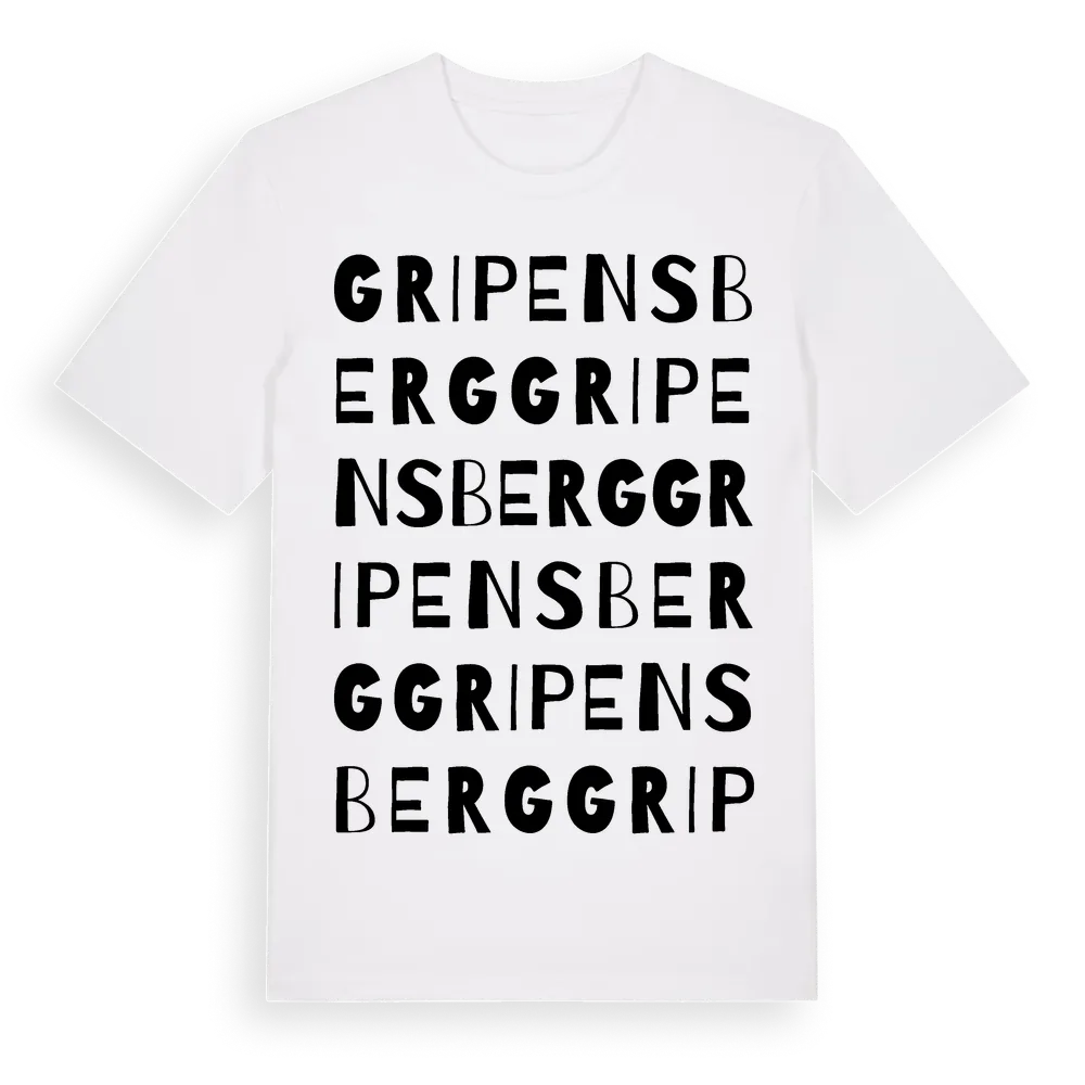 Gripensberg ordlek t-shirt är inspirerad av Gripensberg i Södermanlands län, Sverige. Tröjan är designad för dig som har en speciell koppling till platsen – oavsett om du bor här, har rötterna här eller bara älskar Gripensberg.