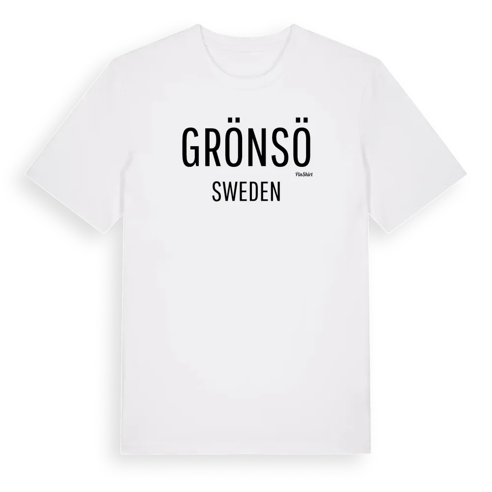 Grönsö i Sverige – ett rakt och tydligt utrop om var du hör hemma. Inget mer behövs. Premium bomull, unisex – från Grönsö i Södermanlands län.
