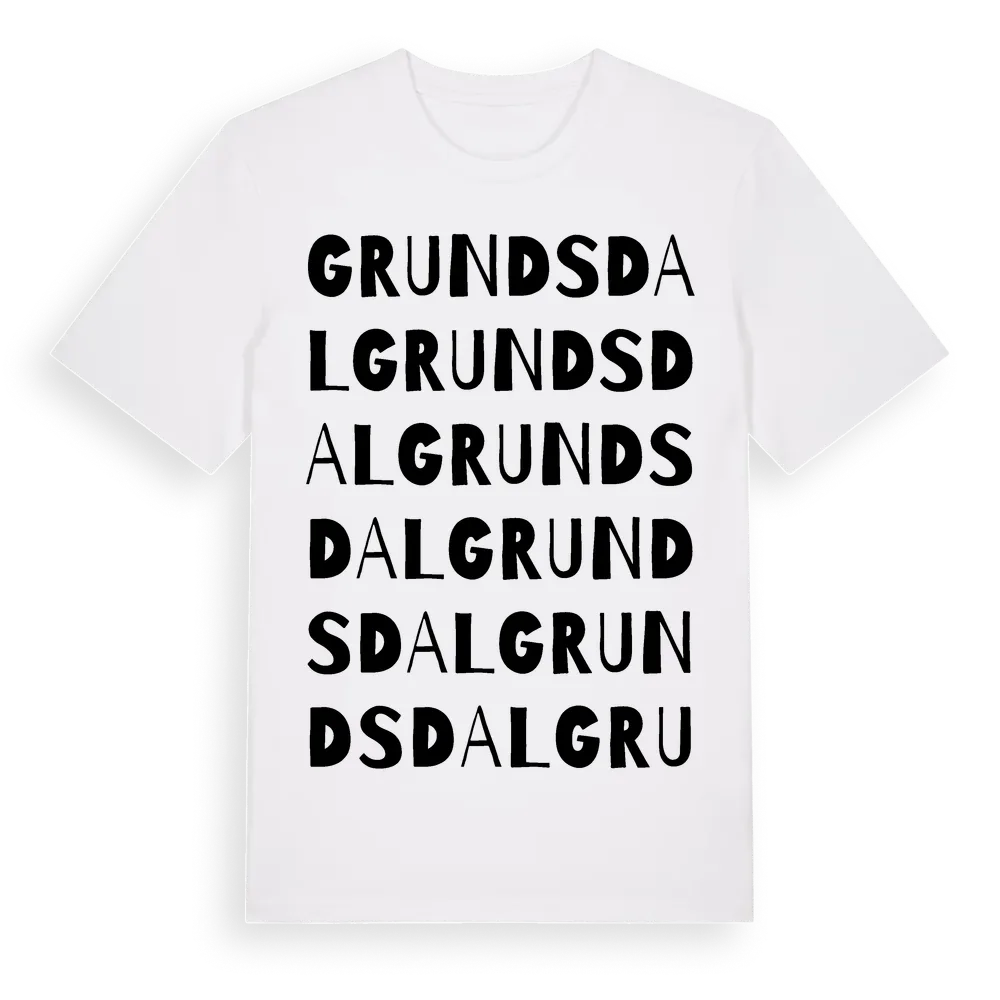 Grundsdal ordlek t-shirt är inspirerad av Grundsdal i Södermanlands län, Sverige. Tröjan är designad för dig som har en speciell koppling till platsen – oavsett om du bor här, har rötterna här eller bara älskar Grundsdal.