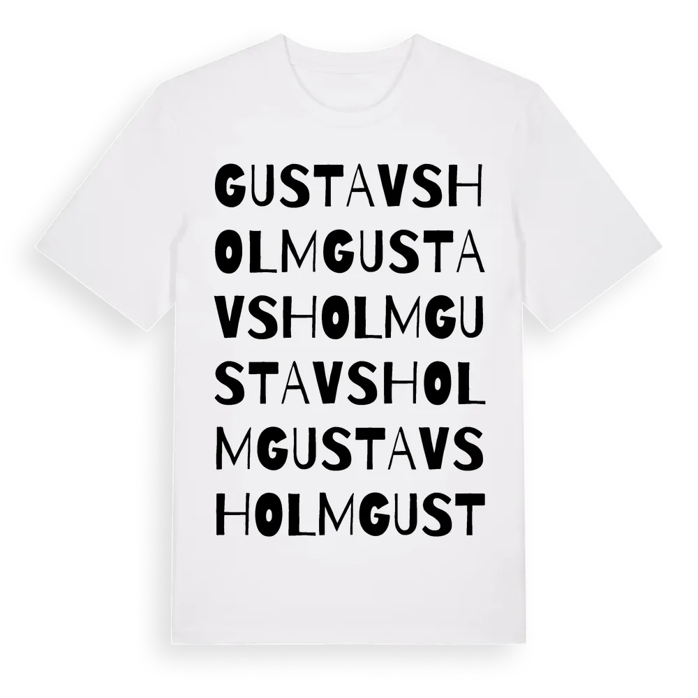 Gustavsholm ordlek t-shirt är inspirerad av Gustavsholm i Södermanlands län, Sverige. Tröjan är designad för dig som har en speciell koppling till platsen – oavsett om du bor här, har rötterna här eller bara älskar Gustavsholm.