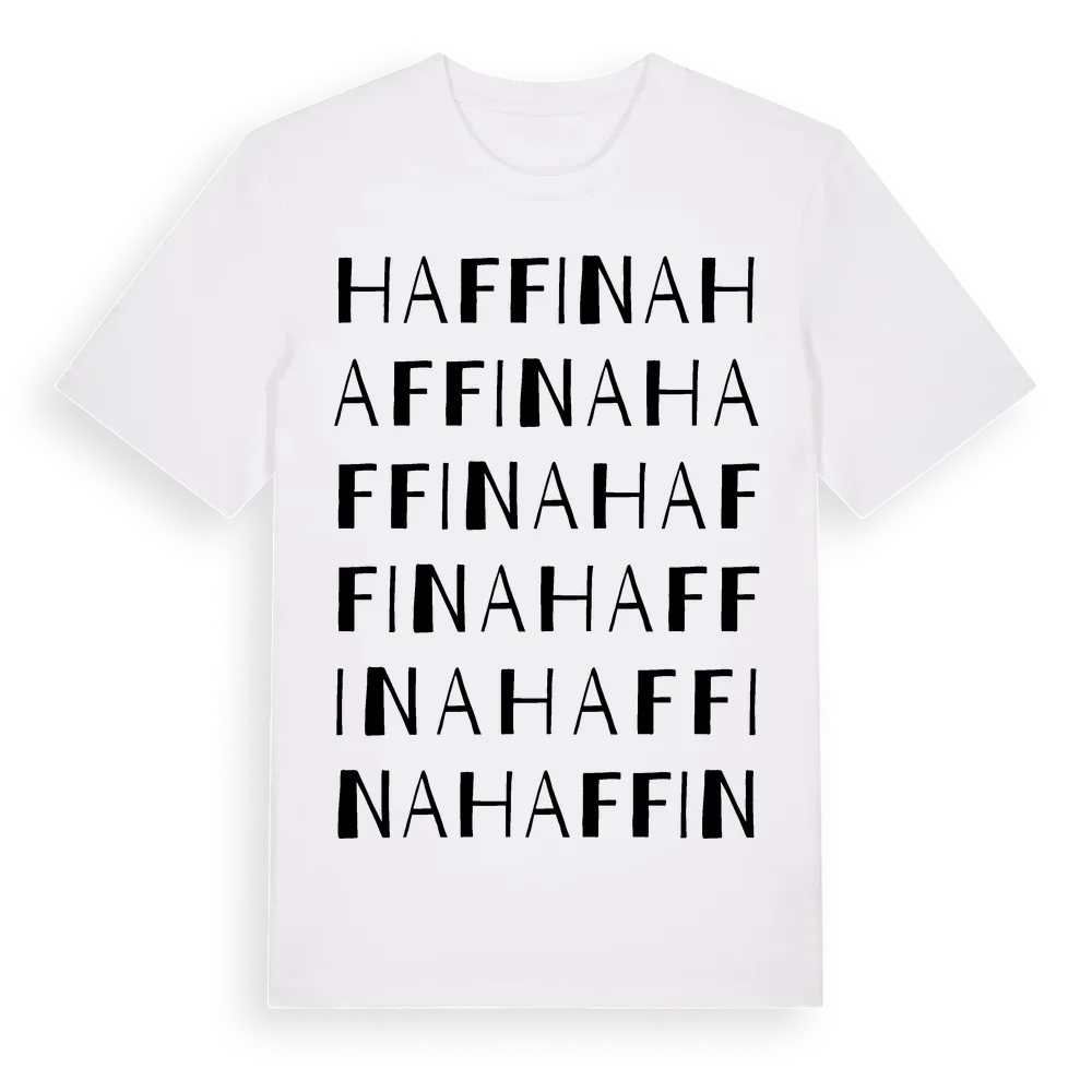 Haffina ordlek t-shirt är inspirerad av Haffina i Södermanlands län, Sverige. Tröjan är designad för dig som har en speciell koppling till platsen – oavsett om du bor här, har rötterna här eller bara älskar Haffina.