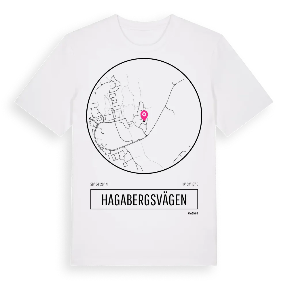 Hagabergsvägen t-shirt är inspirerad av stadsdelen Hagabergsvägen i Södermanlands län, Sverige. Tröjan är designad för dig som har en speciell koppling till platsen – oavsett om du bor här, har rötterna här eller bara älskar Hagabergsvägen.