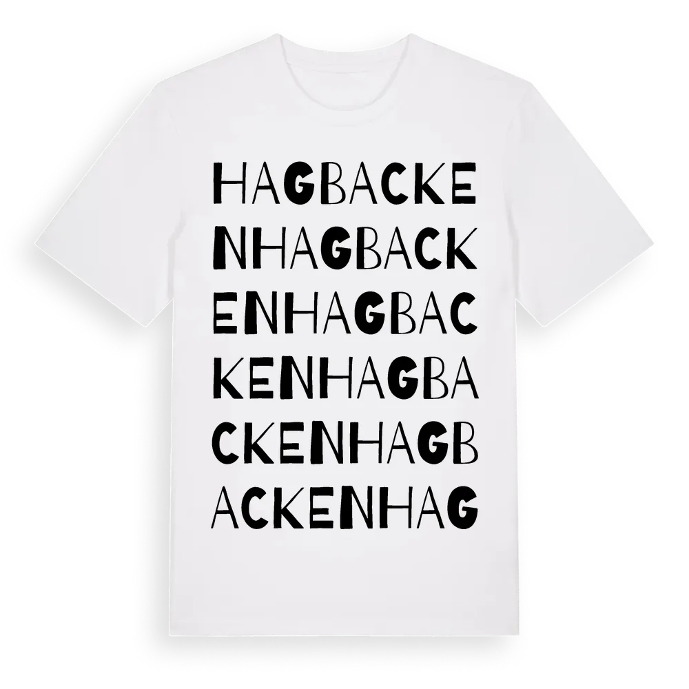 Hagbacken ordlek t-shirt är inspirerad av Hagbacken i Södermanlands län, Sverige. Tröjan är designad för dig som har en speciell koppling till platsen – oavsett om du bor här, har rötterna här eller bara älskar Hagbacken.