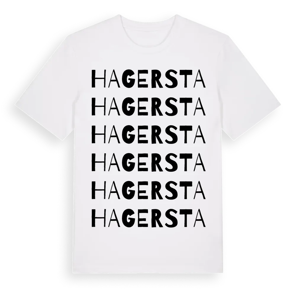 En ordlek byggd på Hagerstas namn. Subtilt och klurig – ett motiv som bara de som verkligen känner platsen fullt ut förstår. Premium bomull, unisex – från Hagersta i Södermanlands län.