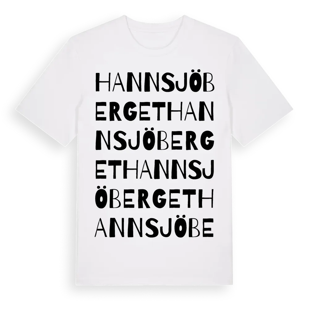 Hannsjöberget ordlek t-shirt är inspirerad av Hannsjöberget i Södermanlands län, Sverige. Tröjan är designad för dig som har en speciell koppling till platsen – oavsett om du bor här, har rötterna här eller bara älskar Hannsjöberget.