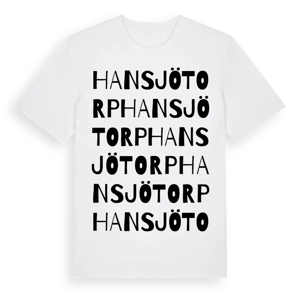 Hansjötorp ordlek t-shirt är inspirerad av byn Hansjötorp i Södermanlands län, Sverige. Tröjan är designad för dig som har en speciell koppling till platsen – oavsett om du bor här, har rötterna här eller bara älskar Hansjötorp.