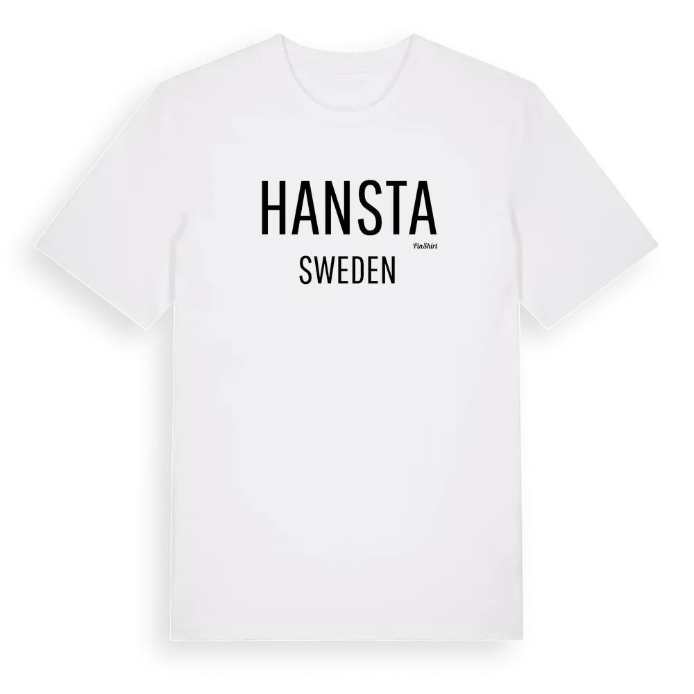 Hansta i Sverige – ett rakt och tydligt utrop om var du hör hemma. Inget mer behövs. Premium bomull, unisex – från byn Hansta i Södermanlands län.