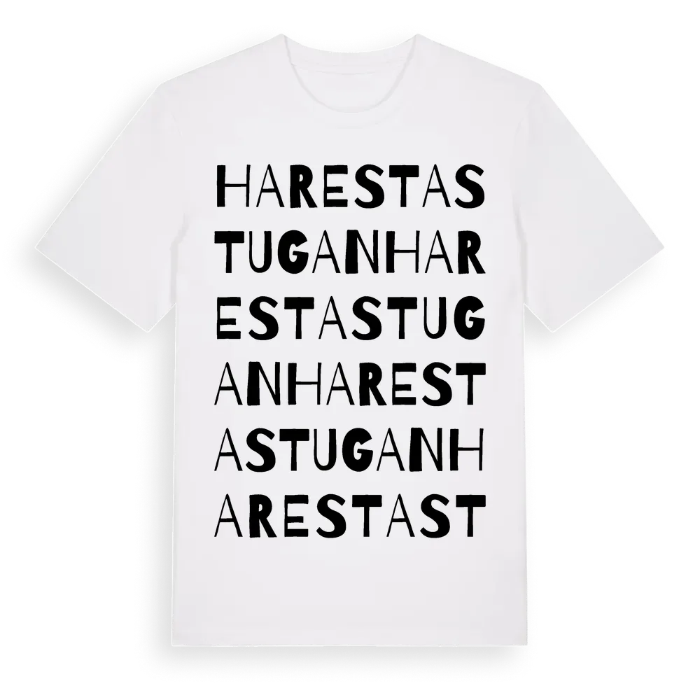 Harestastugan ordlek t-shirt är inspirerad av Harestastugan i Södermanlands län, Sverige. Tröjan är designad för dig som har en speciell koppling till platsen – oavsett om du bor här, har rötterna här eller bara älskar Harestastugan.
