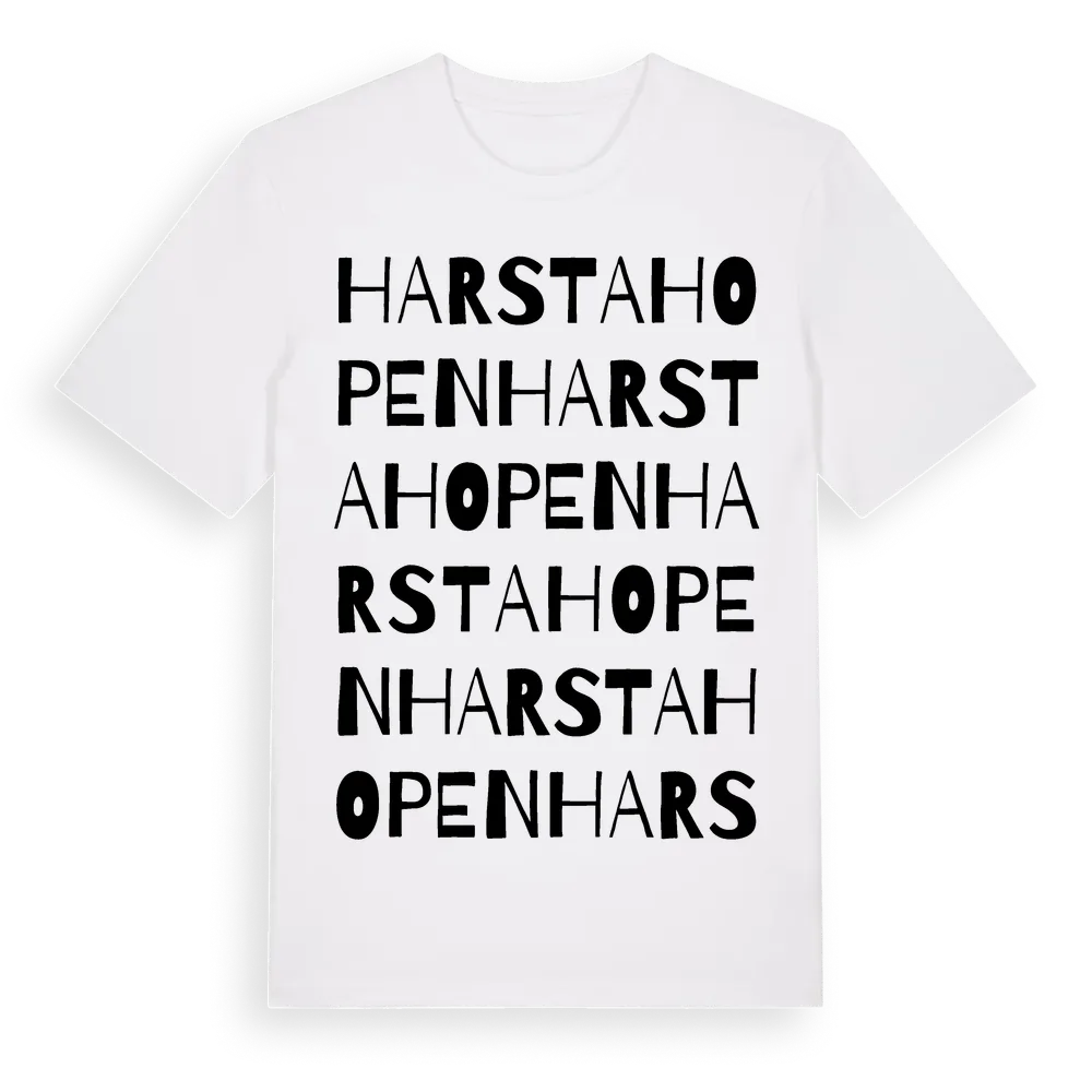 Harstahopen ordlek t-shirt är inspirerad av Harstahopen i Södermanlands län, Sverige. Tröjan är designad för dig som har en speciell koppling till platsen – oavsett om du bor här, har rötterna här eller bara älskar Harstahopen.