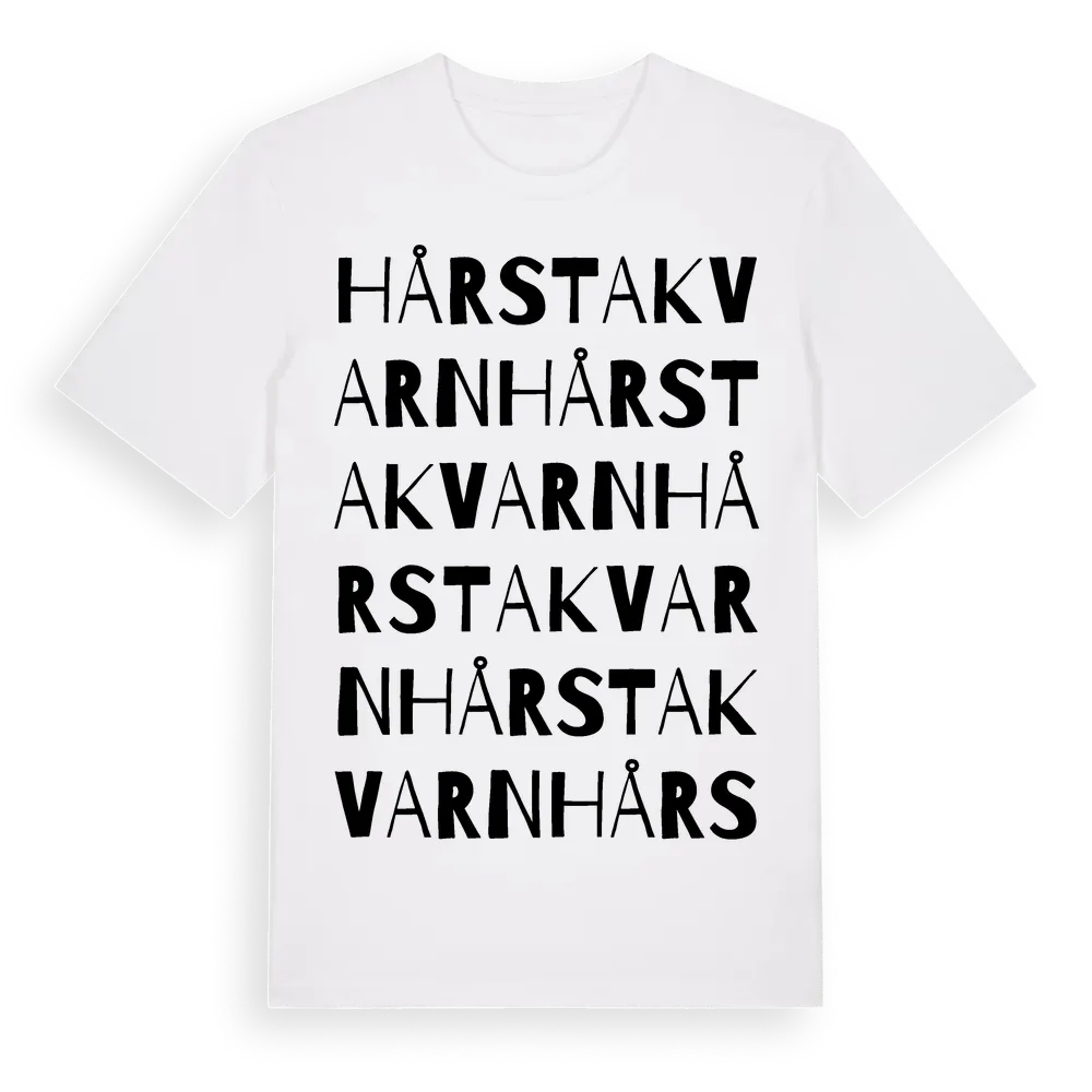 Hårstakvarn ordlek t-shirt är inspirerad av Hårstakvarn i Södermanlands län, Sverige. Tröjan är designad för dig som har en speciell koppling till platsen – oavsett om du bor här, har rötterna här eller bara älskar Hårstakvarn.