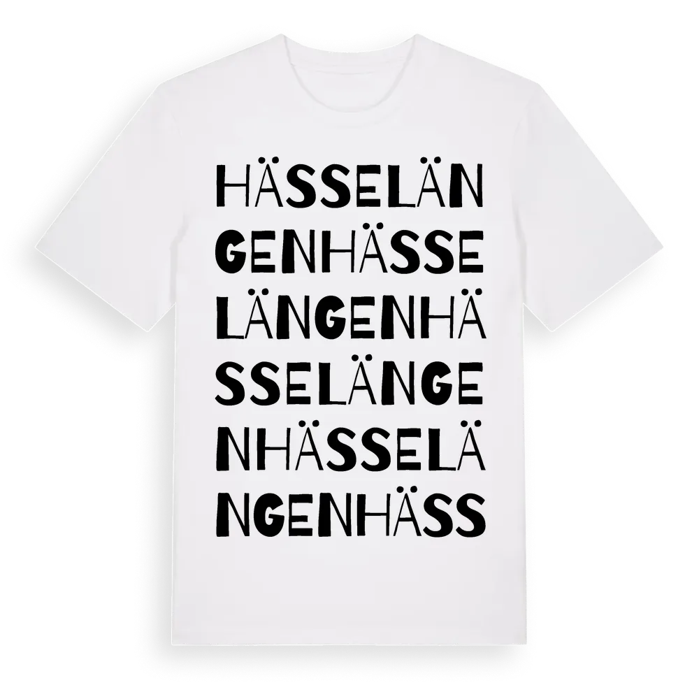 Hässelängen ordlek t-shirt är inspirerad av Hässelängen i Södermanlands län, Sverige. Tröjan är designad för dig som har en speciell koppling till platsen – oavsett om du bor här, har rötterna här eller bara älskar Hässelängen.