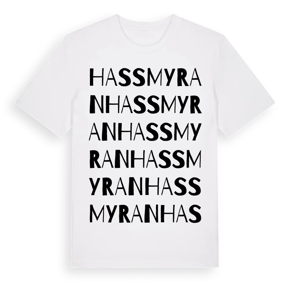 Hassmyran ordlek t-shirt är inspirerad av byn Hassmyran i Södermanlands län, Sverige. Tröjan är designad för dig som har en speciell koppling till platsen – oavsett om du bor här, har rötterna här eller bara älskar Hassmyran.