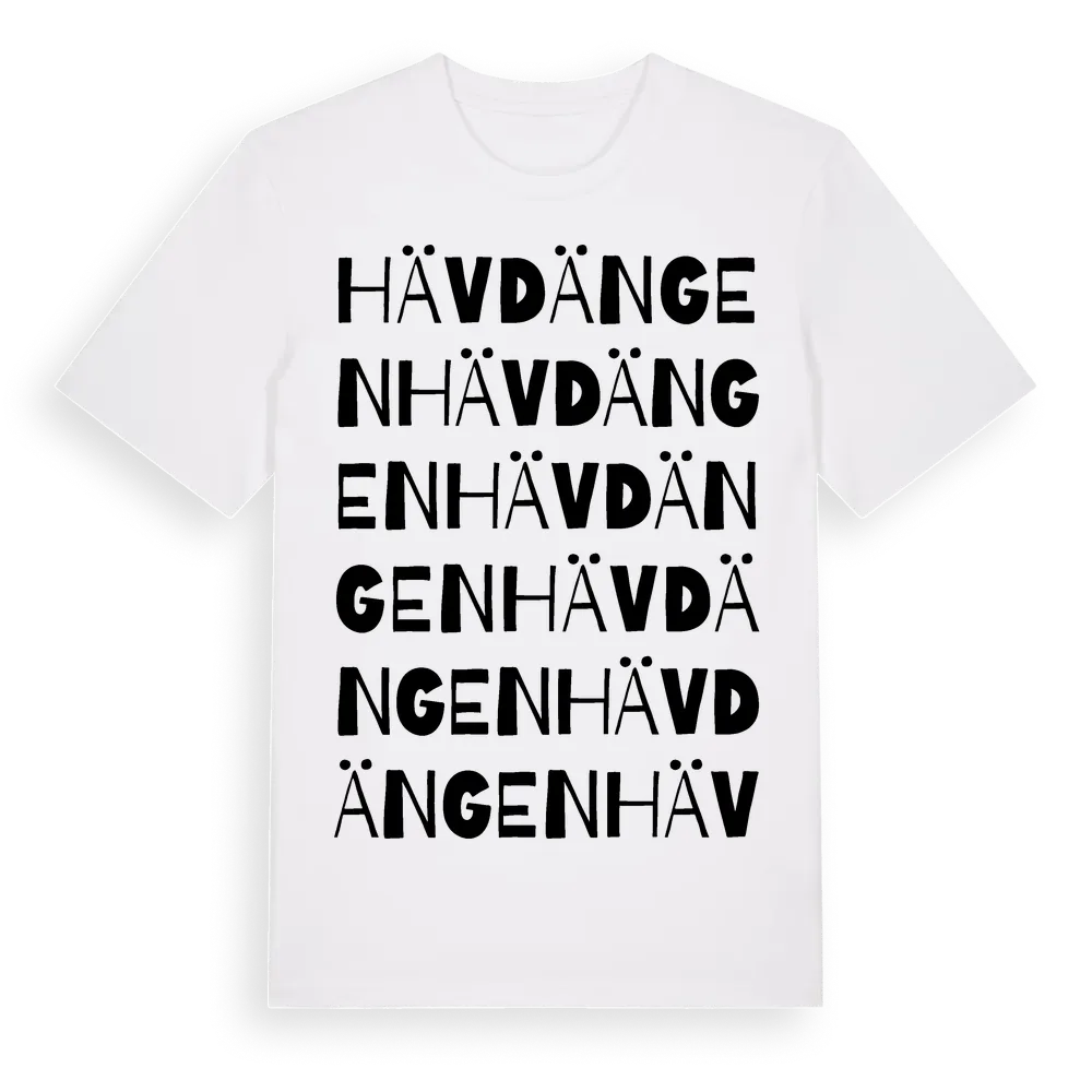 Hävdängen ordlek t-shirt är inspirerad av Hävdängen i Södermanlands län, Sverige. Tröjan är designad för dig som har en speciell koppling till platsen – oavsett om du bor här, har rötterna här eller bara älskar Hävdängen.