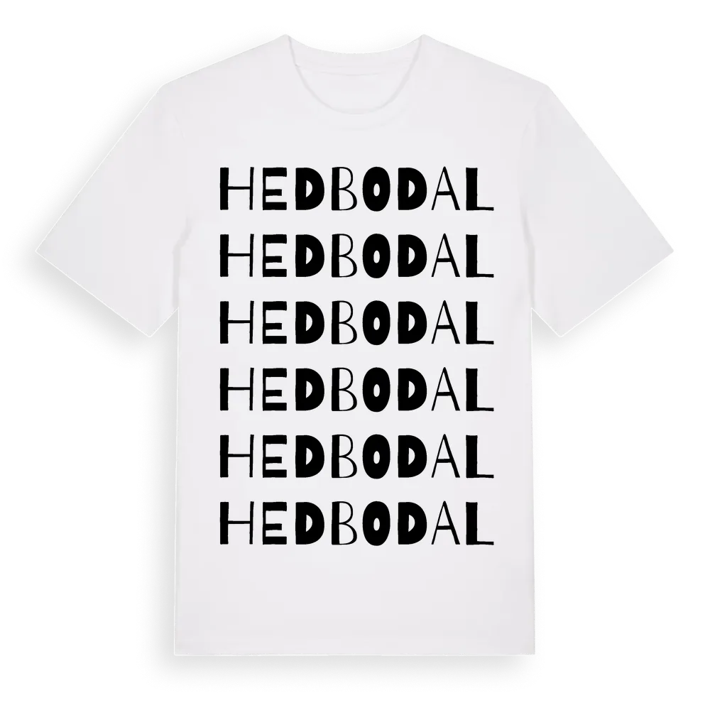 Hedbodal ordlek t-shirt är inspirerad av Hedbodal i Södermanlands län, Sverige. Tröjan är designad för dig som har en speciell koppling till platsen – oavsett om du bor här, har rötterna här eller bara älskar Hedbodal.