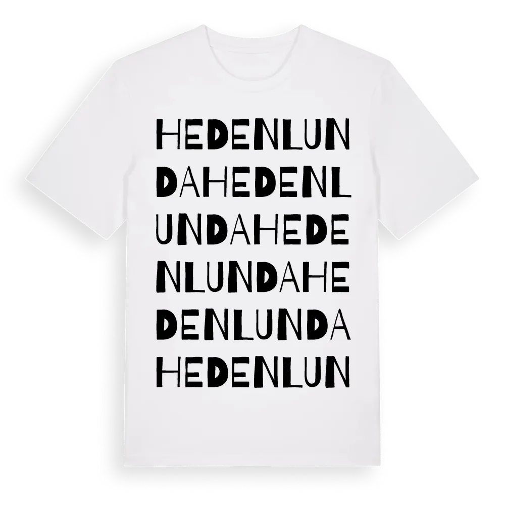Hedenlunda ordlek t-shirt är inspirerad av Hedenlunda i Södermanlands län, Sverige. Tröjan är designad för dig som har en speciell koppling till platsen – oavsett om du bor här, har rötterna här eller bara älskar Hedenlunda.