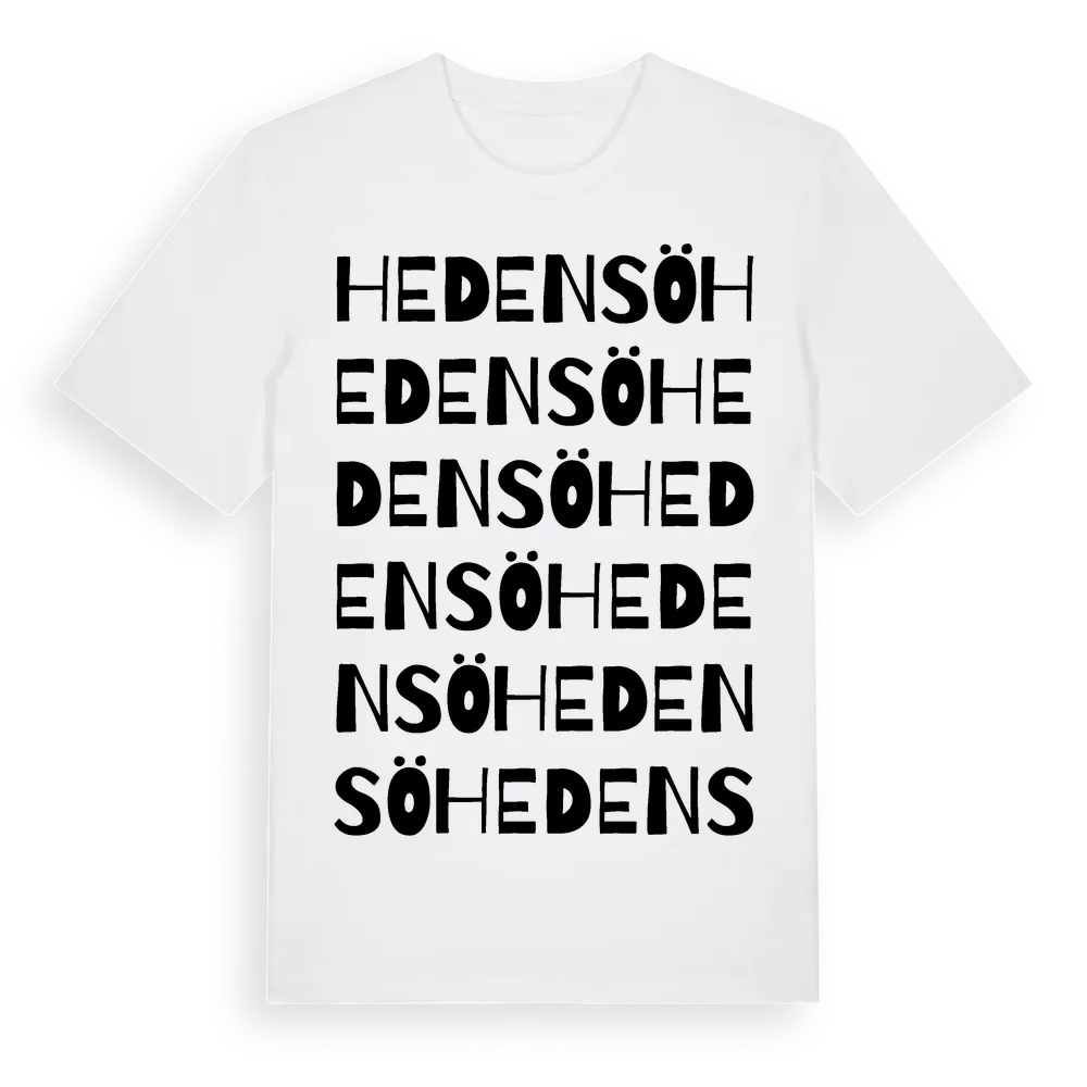 Hedensö ordlek t-shirt är inspirerad av Hedensö i Södermanlands län, Sverige. Tröjan är designad för dig som har en speciell koppling till platsen – oavsett om du bor här, har rötterna här eller bara älskar Hedensö.