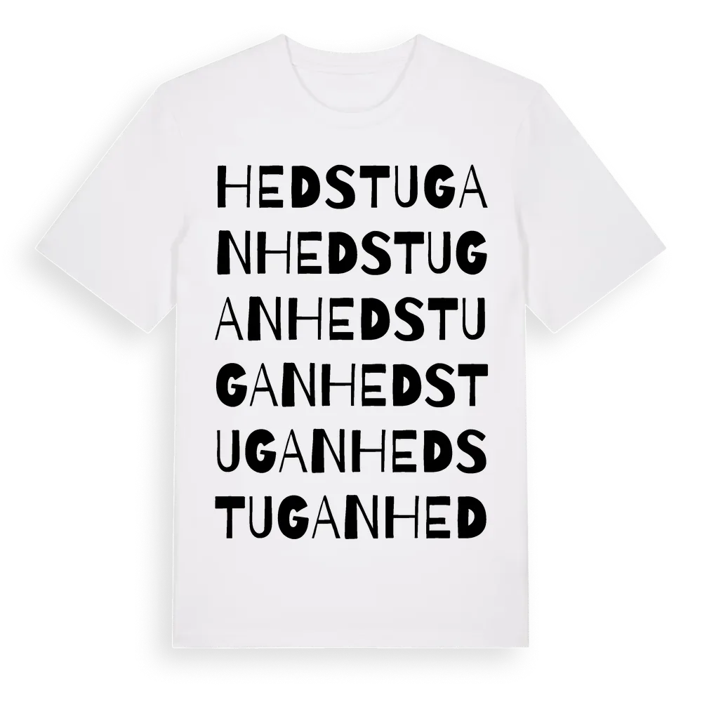 En ordlek byggd på Hedstugans namn. Subtilt och klurig – ett motiv som bara de som verkligen känner platsen fullt ut förstår. Premium bomull, unisex – från Hedstugan i Södermanlands län.