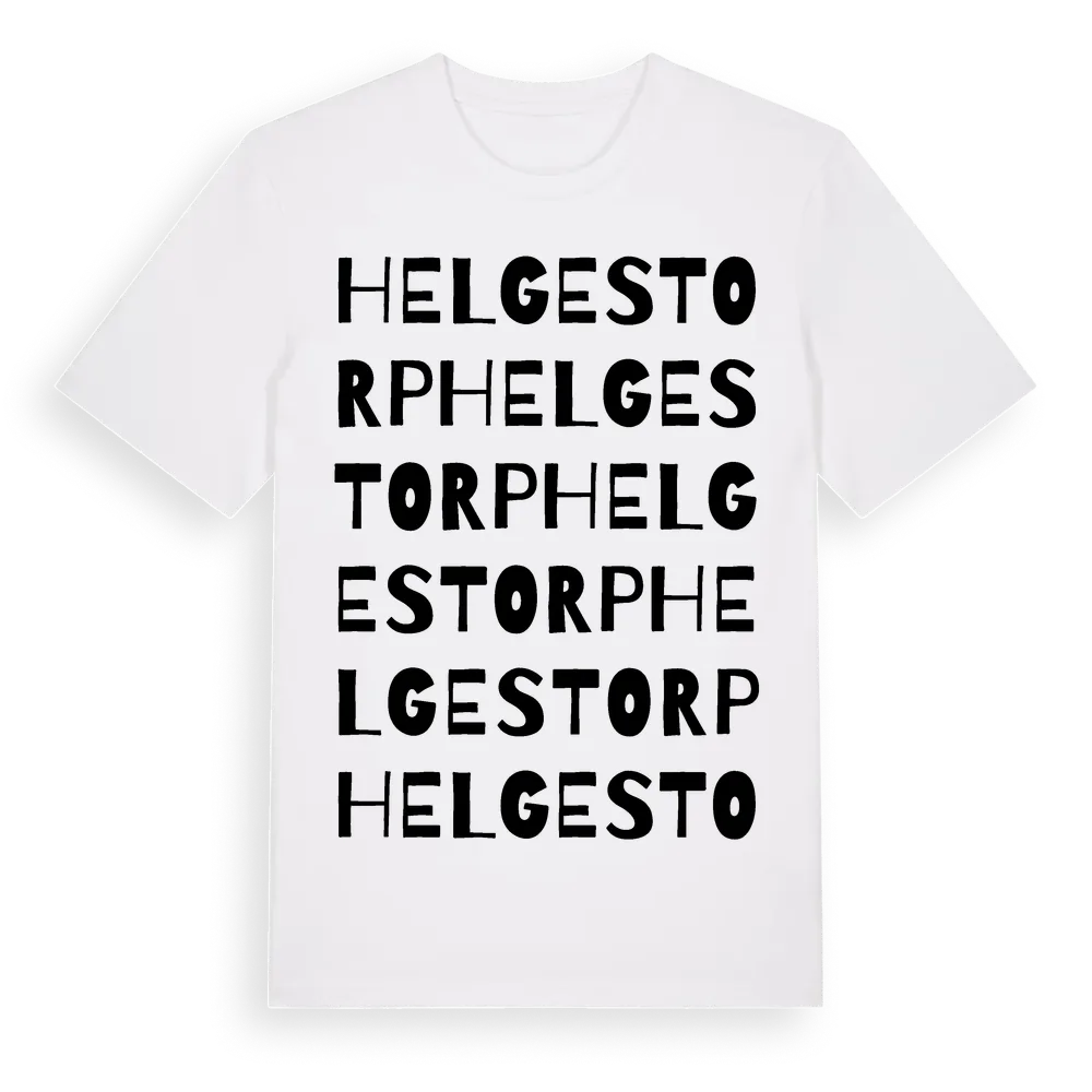 Helgestorp ordlek t-shirt är inspirerad av Helgestorp i Södermanlands län, Sverige. Tröjan är designad för dig som har en speciell koppling till platsen – oavsett om du bor här, har rötterna här eller bara älskar Helgestorp.